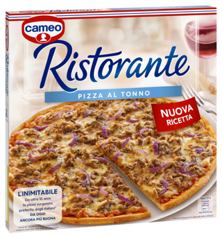 Ingredienti: farina di GRANO tenero, acqua, FORMAGGIO TILSITER, salsa di pomodoro 8,8%, MOZZARELLA 5,7% (LATTE, sale, caglio, fermenti lattici), olio di colza, lievito, amido modificato, zucchero, sale, amido di FRUMENTO, basilico, origano, aglio. Può contenere SENAPE, SOIA.