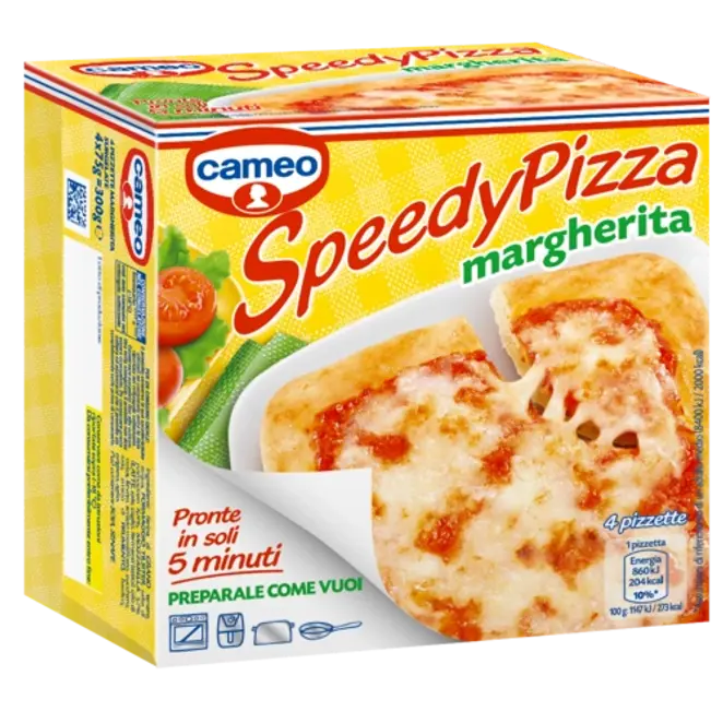 Speedy Pizza è l'irresistibile pizzetta quadrata, con filante mozzarella e squisito pomodoro su un impasto fragrante, pronta in 5 minuti. Disponibile nei formati da 4 pizzette e da 3 pizzette.